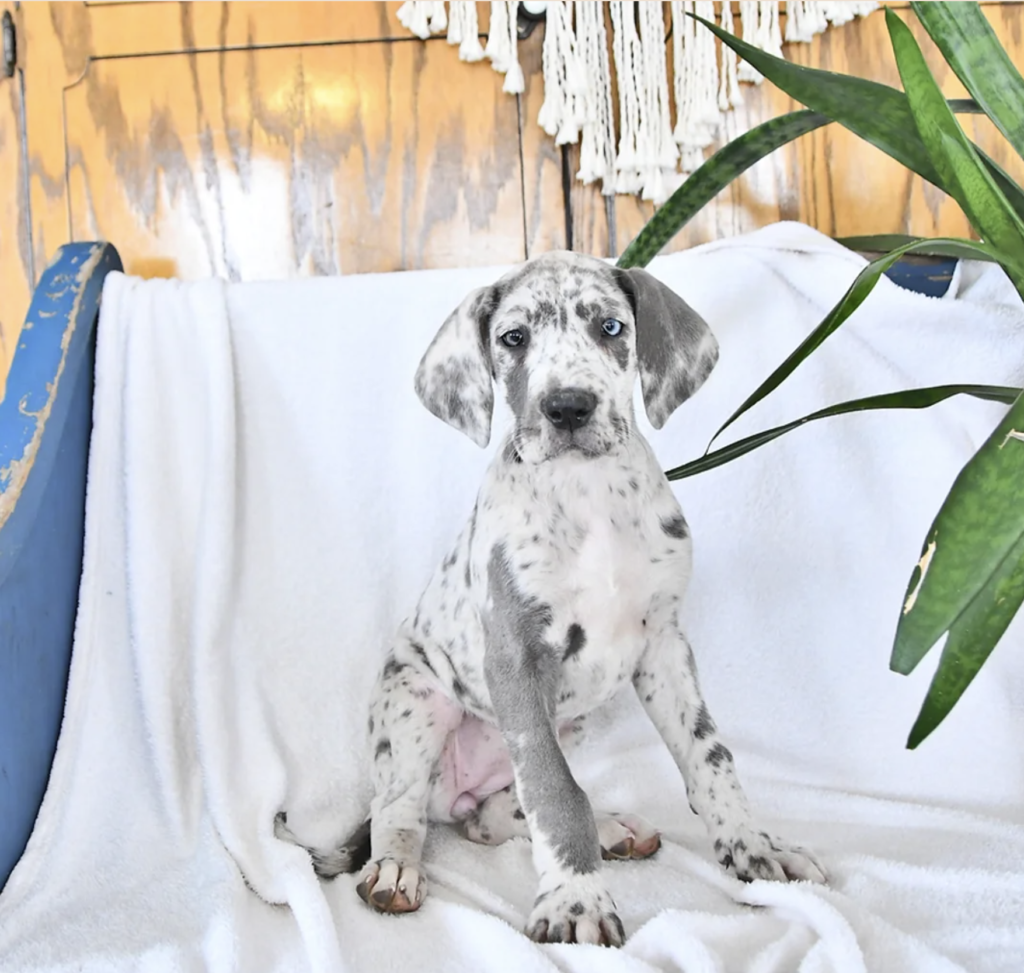 Dani is a handsome male Great Dane puppy with a gentle nature and playful personality. Raised with love and well socialized, he’s ready to find his forever home.